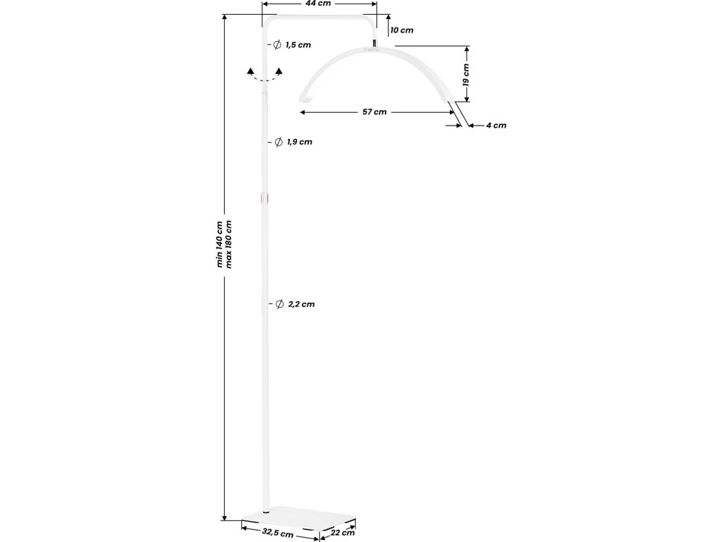 Stojan lze snadno nastavit od 140 do 180 cm pomocí aretačního šroubu umístěného na rameni. To umožňuje přizpůsobit polohu hlavy individuálním potřebám uživatele a různým typům kosmetických křesel, lehátek nebo ošetřovacích stolů a zároveň zajistit vynikající osvětlení pracovního prostoru . Barvu a intenzitu světla lze postupně upravovat pomocí dálkových ovladačů – jeden se nachází hned vedle lampy, takže je během provozu vždy na dosah ruky; druhý umožňuje dálkové ovládání nastavení.