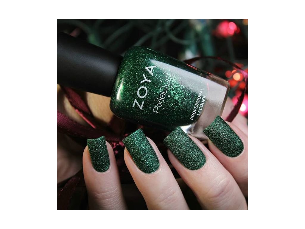 Elphie značky Zoya lze nejlépe charakterizovat jako okouzlující smaragdově zelenou s cukrovým zeleným třpytem v exkluzivní formuli Pixie Dust Sparkle Matt.