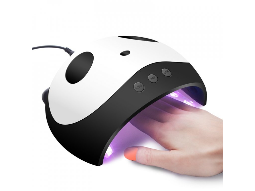 UV/LED lampa s výkonem 36W zaujme svým roztomilým designem ve tvaru pandy v bílo černém provedení. Díky jedinečné konstrukci a technologii LED je lampa spolehlivá, rychle a rovnoměrně vytvrzuje všechny gely, hybridní gel laky a další přípravky určené k vytvrzování UV světlem. Disponuje energeticky úsporným a vysoce výkonným světelným zdrojem. Lampa má vestavěný pohybový senzor a časovač 60, 90, 120s.